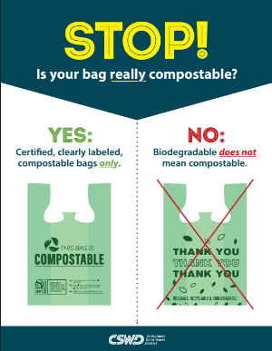 Home Information Library Compostable Bag PosterCompostable Bag PosterComposting Poster to help distinguish between bags that are compostable and those that are not. CSWD_CompostableBags-Poster_8.5x11_FINAL File size: 102.75 KB Created: 07-08-2025 Updated: 07-08-2025 Hits: 243 Download Preview Library Tags# Composting Share: Previous Library Item CSWD Guide to Worm Composting Next Library Item Beyond Your Bin: Material Destinations at CSWD